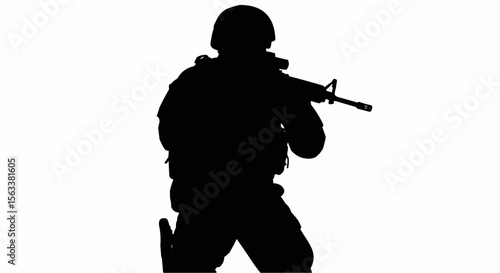 Soldier Silhouette Vector – Military Personnel, Armed Forces, and Combat Readiness Illustration