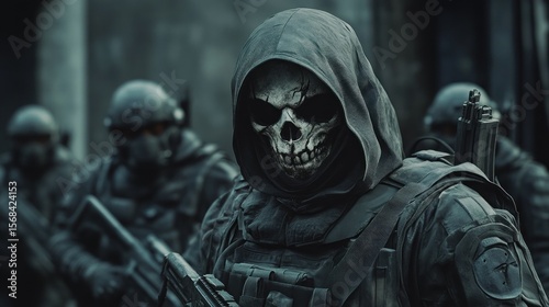 Soldiers in tactical uniform with skull mask