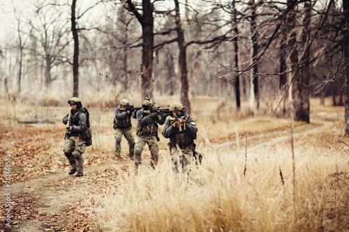 war, army, armed forces, special forces, military, commando, infantry, hero, warrior, sharpshooter, operator, caucasian, male, man, team, subdivision, teamwork, aiming, shooting, standing, running, fighting, looking, assistance, support, control, gun, rifle, machine gun, weapon, helmet, munition, protection, battle, conflict, action, danger, battlefield, risk, courage, outdoors, grass