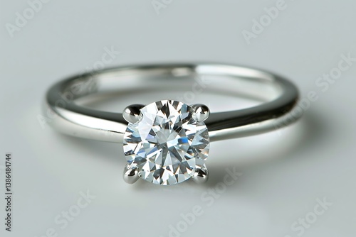 diamond, ring, jewellery, solitaire, white gold, round, brilliant, cut, gemstone, engagement, wedding, elegant, luxury, precious, metal, band, anniversary, sparkle, shine, gleam, clarity, brilliance, prong, setting, closeup, detail, fashion, expensive, gift, romance, love, celebration, wealth, investment, clear, bright, soft, blurred, smooth
