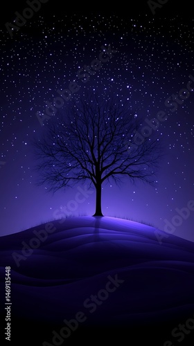 night, sky, star, tree, hill, dark, purple, silhouette, landscape, lonely, nature, solitude, quiet, stillness, peaceful, serene, tranquil, beautiful, evocative, depth, light, cold, winter, barren, empty, huge, cosmos, celestial, twinkling, glimmering, darkness, silent, isolated, shade, shadow, mountain, hillside, horizon, glowing