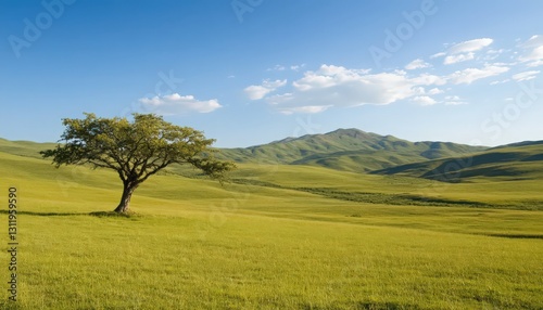 tree, field, grass, hill, landscape, nature, sky, blue, green, summer, sun, day, rural, scenic, view, scenery, countryside, peaceful, serene, tranquil, calm, quiet, solitary, alone, isolated, horizon, meadow, pasture, farmland, agriculture, environment, wildlife, ecology, natural, beautiful, amazing, stunning, breathtaking, picturesque, photographic, image, photo, picture, foliage, cloud, mountain