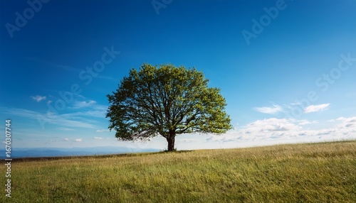 solitary tree stands against serene blue sky evoking sense of tranquility and peace gentle hues create mystical atmosphere
