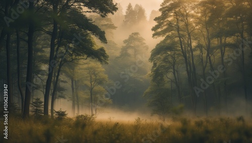 Solitary Woodland Scene. Image suitable for photo editing, banners, or posters.