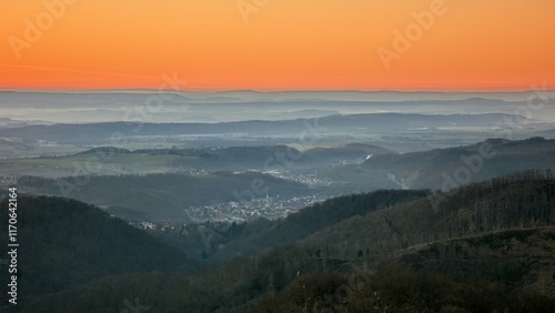 countryside, heaven, mountain, sunset, nature, cloud, fog, sunrise, panorama, forest, view, hill, morning, vale, dusk, sun, tree, travel, summer, beauty, inverse