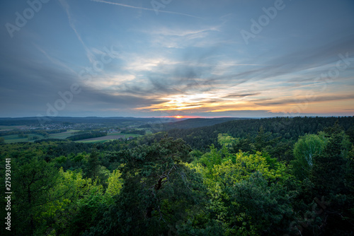 sunset, sunset, forest, nature, dusk, cloud, cloud, outlook, panorama, pretty, scenic, green, view, sunlight, summer, hill, tree, beauty