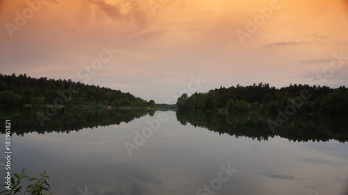 lake, water, sunset, sky, landscape, nature, river, sunrise, sun, blue, cloud, forest, fog, dusk, morning, tree, cloud, evening, calm, tree, dawn, orange, beauty, mist