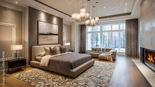 Sophisticated modern bedroom design with luxurious decor and elegant lighting