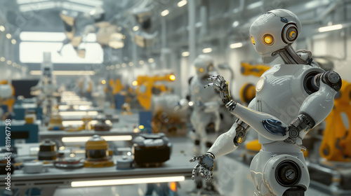 Sophisticated robot in a high-tech factory. A vision of automation and robotics in manufacturing, suitable for industrial, technology, and future work concept uses.