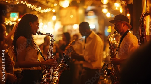 jazz, club, musician, performing, lively, atmosphere, new, orleans, evening, warm, light, vibrant, guest, dancing, cinematic, nightlife, entertainment, energetic, soulful, music, band, cultural, life events, scene, crowded, venue, festive, celebration, bustling, artistic, ambience, industry, dynamic