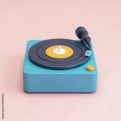 Sound and wave surround concept. Colorful vinyl record player on a pastel background.