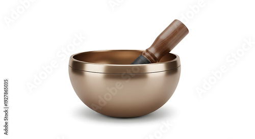 Sound Therapy: A tranquil image showcases a serene metallic singing bowl alongside its accompanying mallet, offering a visual representation of peace and sound therapy.