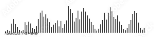 Sound wave or voice message waveform. Podcast, media record, radio signal. Decibel audio record icon isolated on white background. Equalizer line