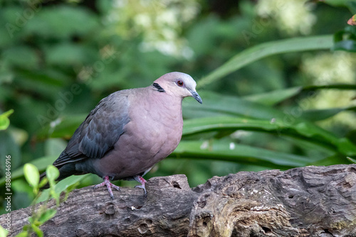 South African birds - red-eyed dove isolated on a log in a garden
