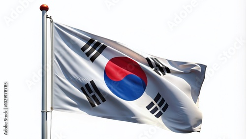 south korea, flag, waving, isolated, white background, identity, freedom, heritage, minimalistic, patriotism, background, movement, symbolism, traditional, modern, landscape, colours, concept, creativity, national flag, design, aesthetic, photo, isolated object, abstract, graphic design