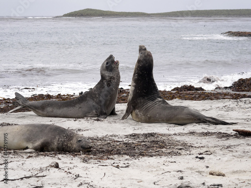 South males fighting Elephant Seal, Mirounga leonina, Cracas Island, Falkland Islands - Malvinas