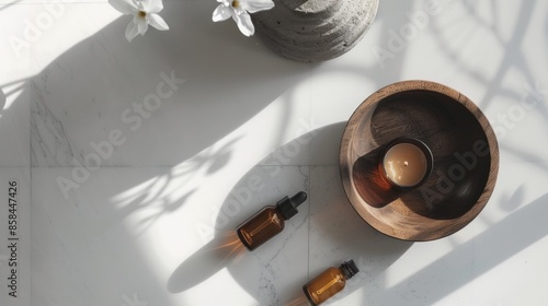 Spa Essentials on White Marble Surface