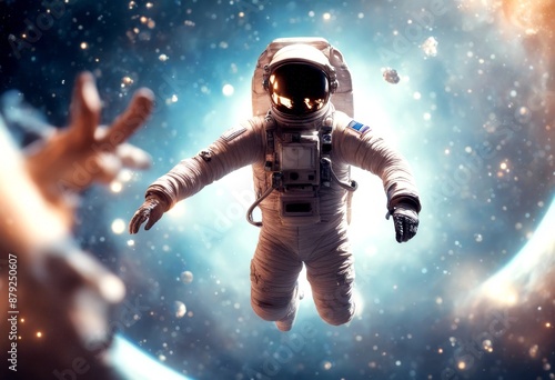 space 3d illustration scene fiction science viewer offer i outer astronaut stars reaching open hand floating cosmos universe star future technology fantasy