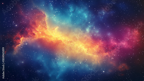 Space concept background. Universe galaxy horizontal poster. Amazing cosmic wallpaper. Raster bitmap digital illustration.