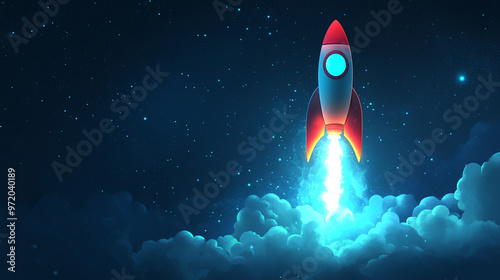 space rocket launches with a burst of flames against the night sky, symbolizing ambition, progress, and the power of human ingenuity