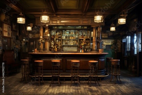 Spacious Bar interior vintage loft. Interior ireland. Generate Ai