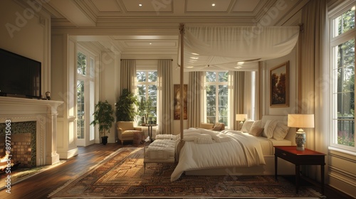 bedchamber, fireplace, bed, roomy, luxurious, comfort, elegance, room, warm, cosy, atmosphere, pillow, linen, interior, design, decor, furniture, home, relaxation, architecture, property, grand, inviting, stylish, beautiful, large, retreat, sleeping, restful, elegant, comfortable, style, furnishing, house, estate