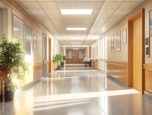 hospital, room, roomy, wooden, accent, natural, light, design, modern, clean, three-dimensional, render, health care, bright, peaceful, calming, serene, functional, soothing, neutral, interior, healing, comfortable, professional