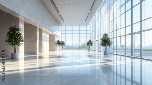 Spacious modern atrium with large windows and indoor plants bathing in natural light