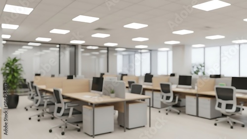 office, workplace, desk, computer, chair, workstation, cubicle, interior, modern, corporate, business, environment, light, window, roomy, clean, professional, furniture, plant, room, empty, nobody, architecture, design, table, cabinet, ceiling, lamp, partition, open