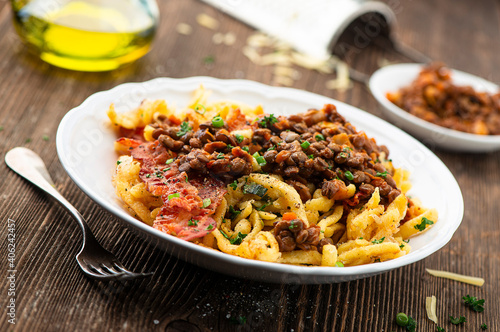 specialty, salad, onion, alimentary, dietary, bavarian, wood, nobody, dough, closeup, delicious, cooked, white, fiber, traditional, egg, german, lunch, cheese, fresh, roasted, typical, meat, healthy, legume, bacon, meal, food, dinner, lentil, cookery, stew, table, cooking, austrian, vegetarian, pasta, potato, rustic, vegetable, plate, noodle, german, boiled, tasty, brunch, background, dish