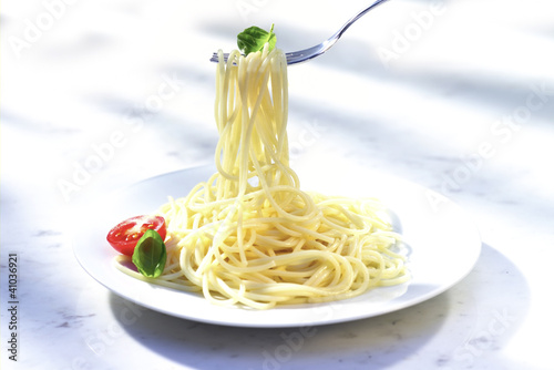 sun, light, basil, tomatoes, italian, fork, plate, noodle, pasta, spaghetti