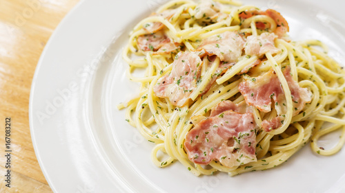 spaghetti white sauce with bacon.