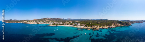Spain, Majorca, Costa de la Calma, aerial view over Peguera with hotels and beaches
