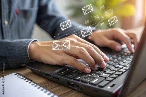 Spam email alert danger concept. person typing on laptop receives scam notification, illustrating cybersecurity risk and data breach threat in modern digital workspace.