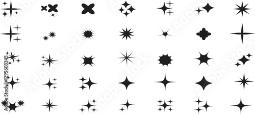 Sparkle Star Icon Set - Vector Stock Illustration. Stars collection. Star vector icons. Black Series. Falling Star, firework, Twinkle, Star Shape, Celebritie,