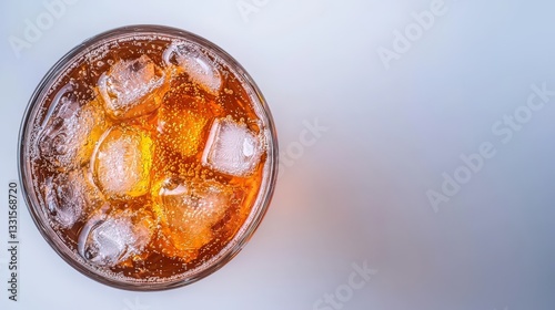 Sparkling Beverage with Ice Cubes in a Clear Glass on Light Background