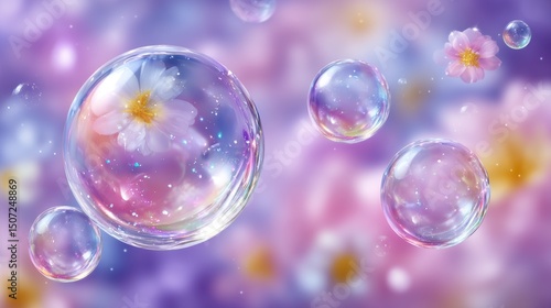 Sparkling Bubbles with Flowers Soft Pastel Background Dreamy Floral Abstract Nature
