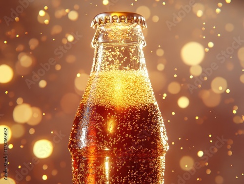 bottle, fizzy, drink, beverage, bubble, sparkling, carbonated, soda, pop, cola, gold, bokeh, light, background, celebration, party, festive, glamour, luxury, refreshment, thirst, cold, summer, delicious, sweet, transparent, glasses, liquid, texture, closeup, macro, detail, vibrant, golden hour, effervescent, bubbly, amber, brown, light, shine, shimmer, glow, bright, sparkling water, soft drink, abstract, pattern, design, element