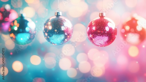Sparkling ornaments hang gracefully, capturing light in a vibrant holiday atmosphere filled with joy and warmth