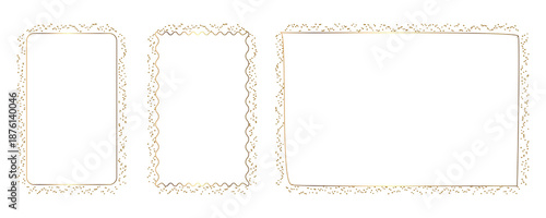Sparkling rectangle gold border with glitter texture. Festive frame isolated on white PNG