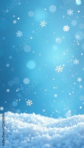 Sparkling snowflakes in a pale blue background, snowy landscape, sparkling, crystal clear