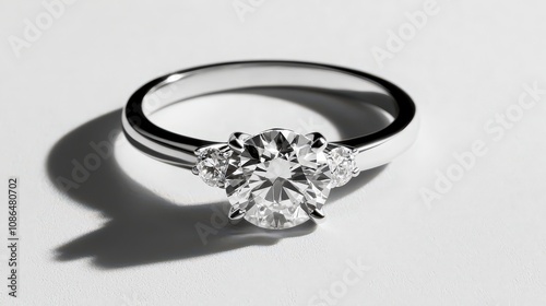Sparkling Three Stone Diamond Engagement Ring on White Background