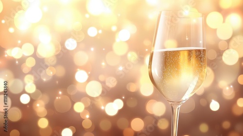 Sparkling white wine glass against soft evening lights elegant drinkware photography warm atmosphere close-up view