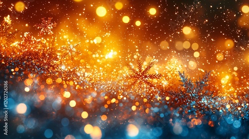 snowflake, glistering, gold, blue, light, bokeh, sparkle, shine, glow, orange, dark, night, winter, holiday, celebration, festive, magic, abstract, background, texture, design, element, pattern, bright, vibrant, shimmer, decoration, season, crystal, frost, cold, glamour, luxury, elegant, beauty, image, graphic, art, visual, effect