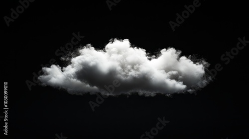 Sparse white dust cloud floating on a black background, softly illuminated to highlight fine details