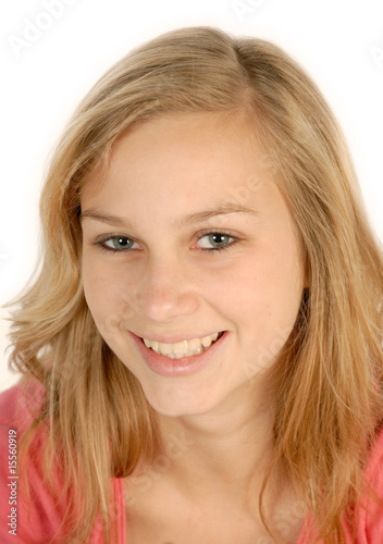 girl, laugh, fun, charisma, natural, portrait, youth, smile, fun, blond, woman, upper body, friendly, pleased, be glad, shine, t-shirt, hair, female, young, isolated, release