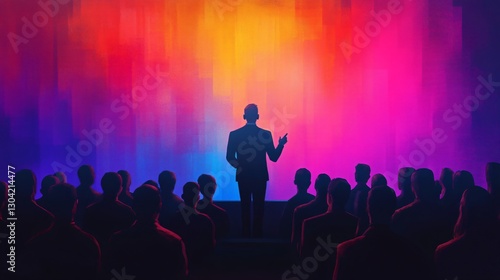 Speaker Inspiring Audience with Vivid Presentation at Business Conference or Seminar
