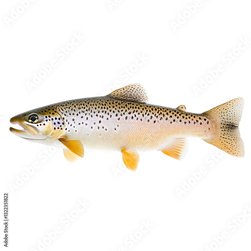 Speckled Brown Trout in Profile. Freshwater fish with golden hues, black spots. A natural beauty ready for an angler's delight! Isolated on black.