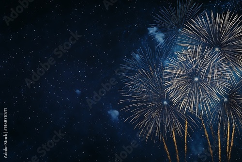Spectacular fireworks explode against the backdrop of a starry night sky