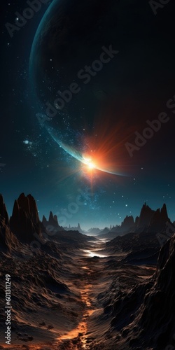 space, universe, galaxy, star, outer space, science fiction, extraterrestrial, science fiction, exploration, unknown, fantasy, cosmic, astronomy, planet, celestial, orbit, surface, terrain, science, discovery, future, space-travel, technology, starry, surreal, imaginative, futuristic, colourful, high-coloured, mysterious, interstellar, life, ai, generative